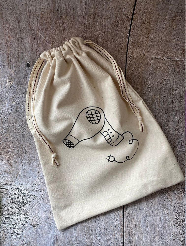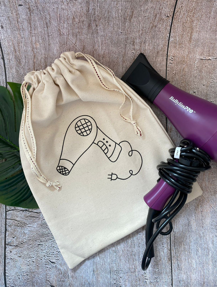 Bolsa de tela para guardar y transportar el secador de pelo.. medidas: 29 x 38 cms