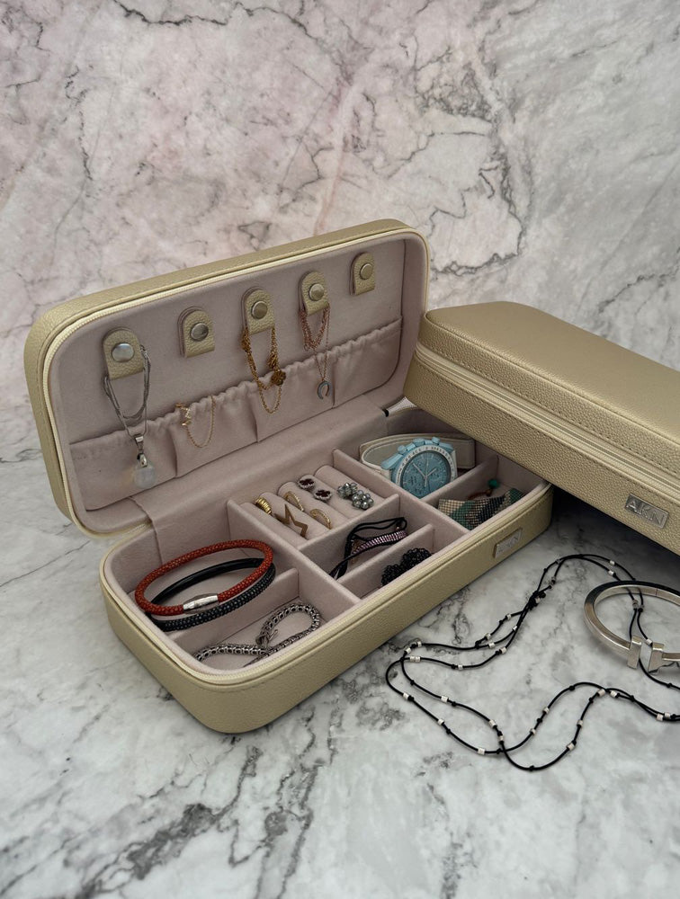 Joyero maca con cierre en cuerina de color. medida 23.5 x 12 x 5.2 cm