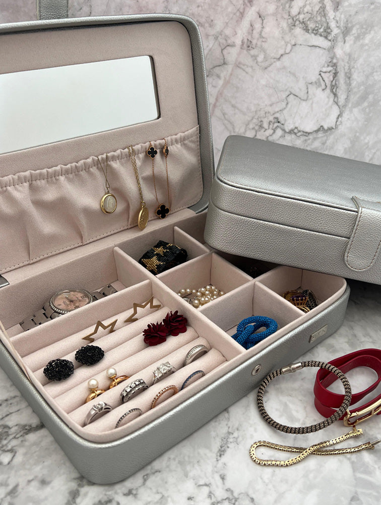 Joyero ariana con divisiones internas y espejo. medidas: 26.5 x 18.5 x 6.5 de altura
