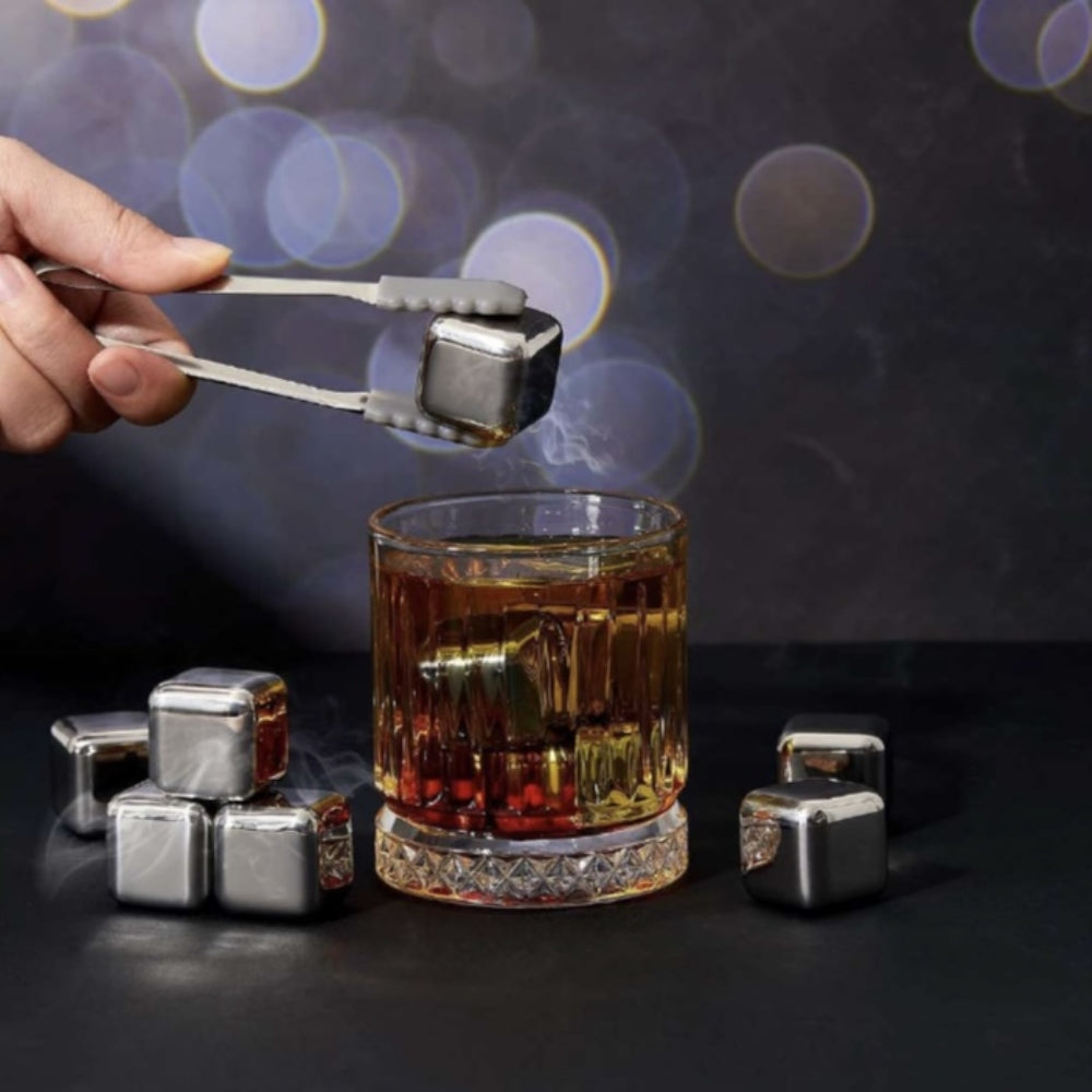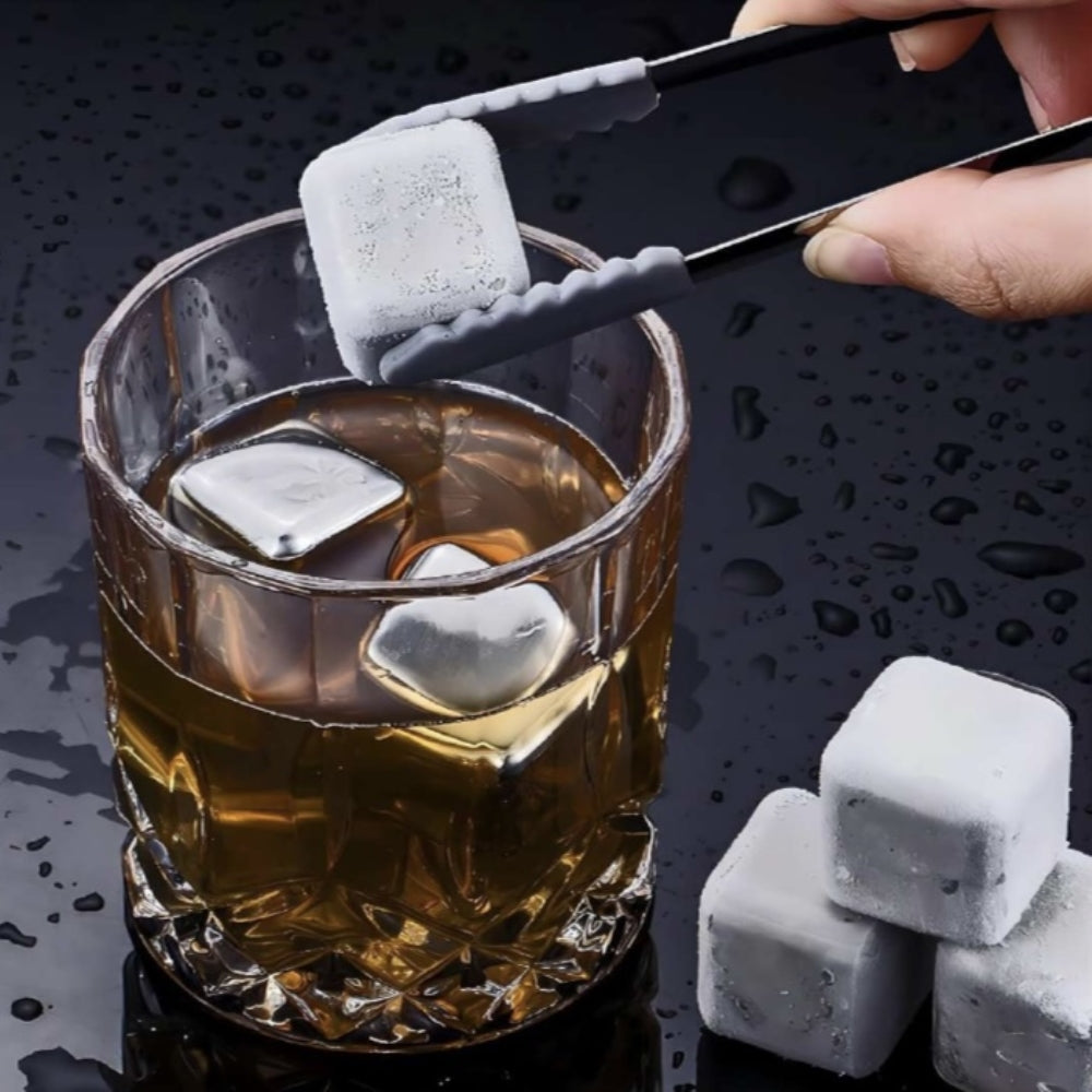 4 cubos de acero inoxidable para enfriar tus bebidas. novedoso producto que te hara disfrutar de tus bebidas manteniendo el sabor original, ayudo a que tus bebidas se mantengan frescas sin aguarlas.simplemente congela los cubos por 45 minutos y listo. medida del empaque: 6.5 x 6.5 x 3 cm