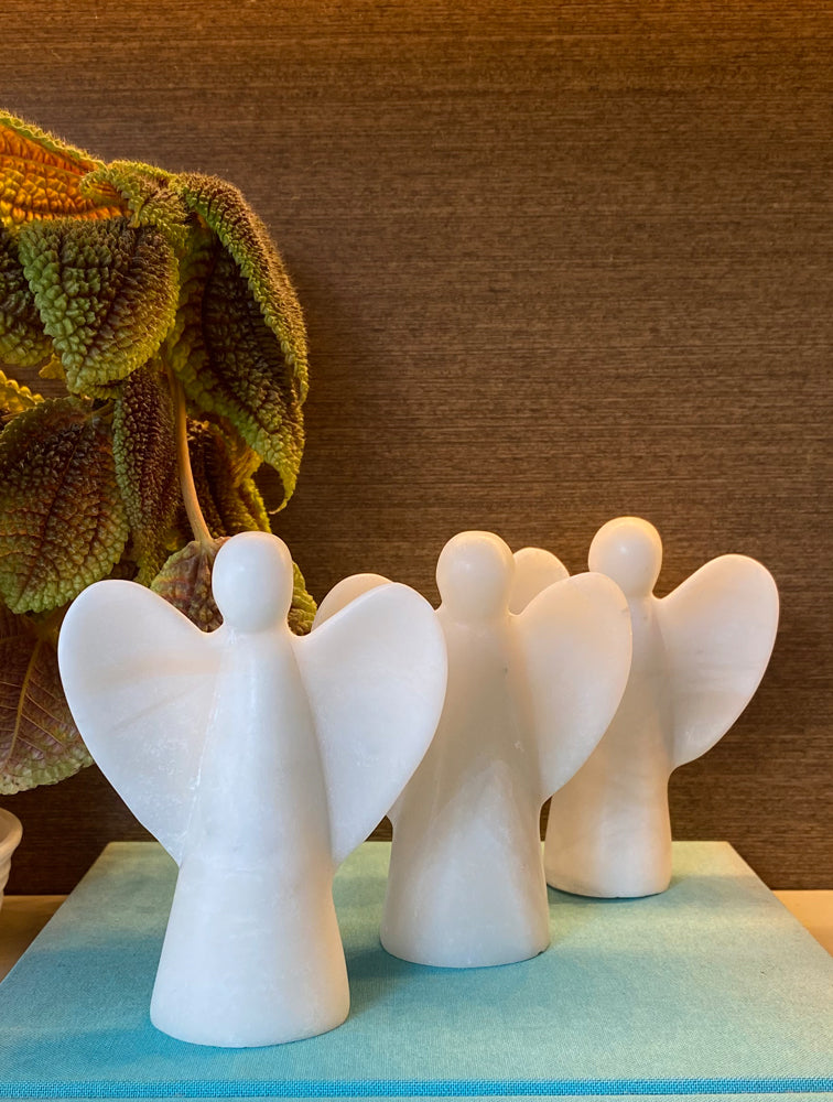 Angel tallado en piedra de huamanga por artesanos ayacuchanos. mide 10.2 cms de alto el color de la piedra puede variar al ser una piedra natural.