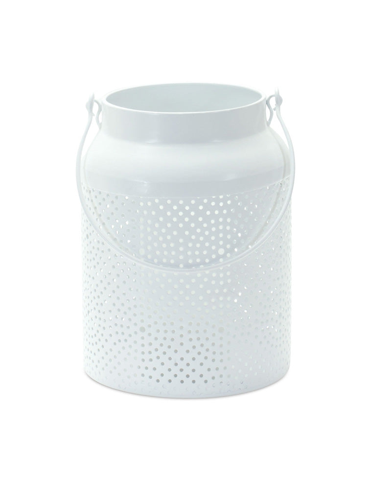 Fanal blanco de metal con asa. mide 17.80 cms de diámetro x 23.50 cms de alto.