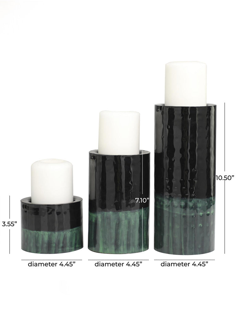 Candelabro de metal. mide 11.45 cms de diametro x 26.70 cms de alto.