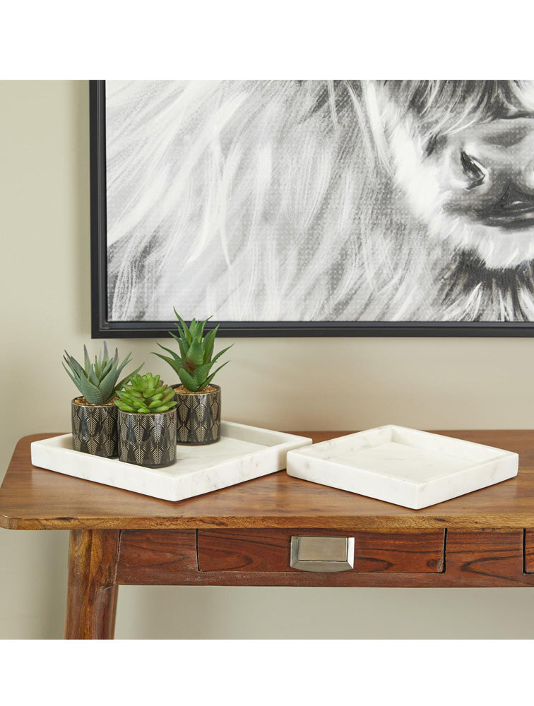 Centro de mesa cuadrado grande de marmol blanco con bordes elevados. mide 25.40 cms por lado x 3.30 cms de alto.