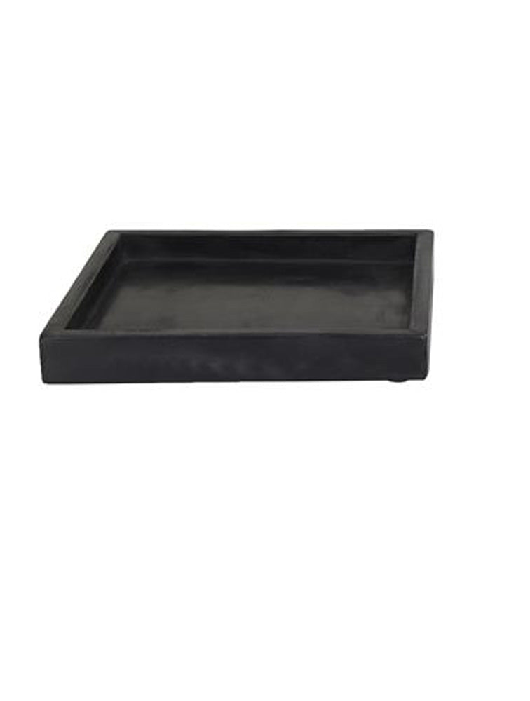 Centro de mesa cuadrado chico de marmol negro con bordes elevados. mide 21.10 cms por lado x 3.10 cms de alto.