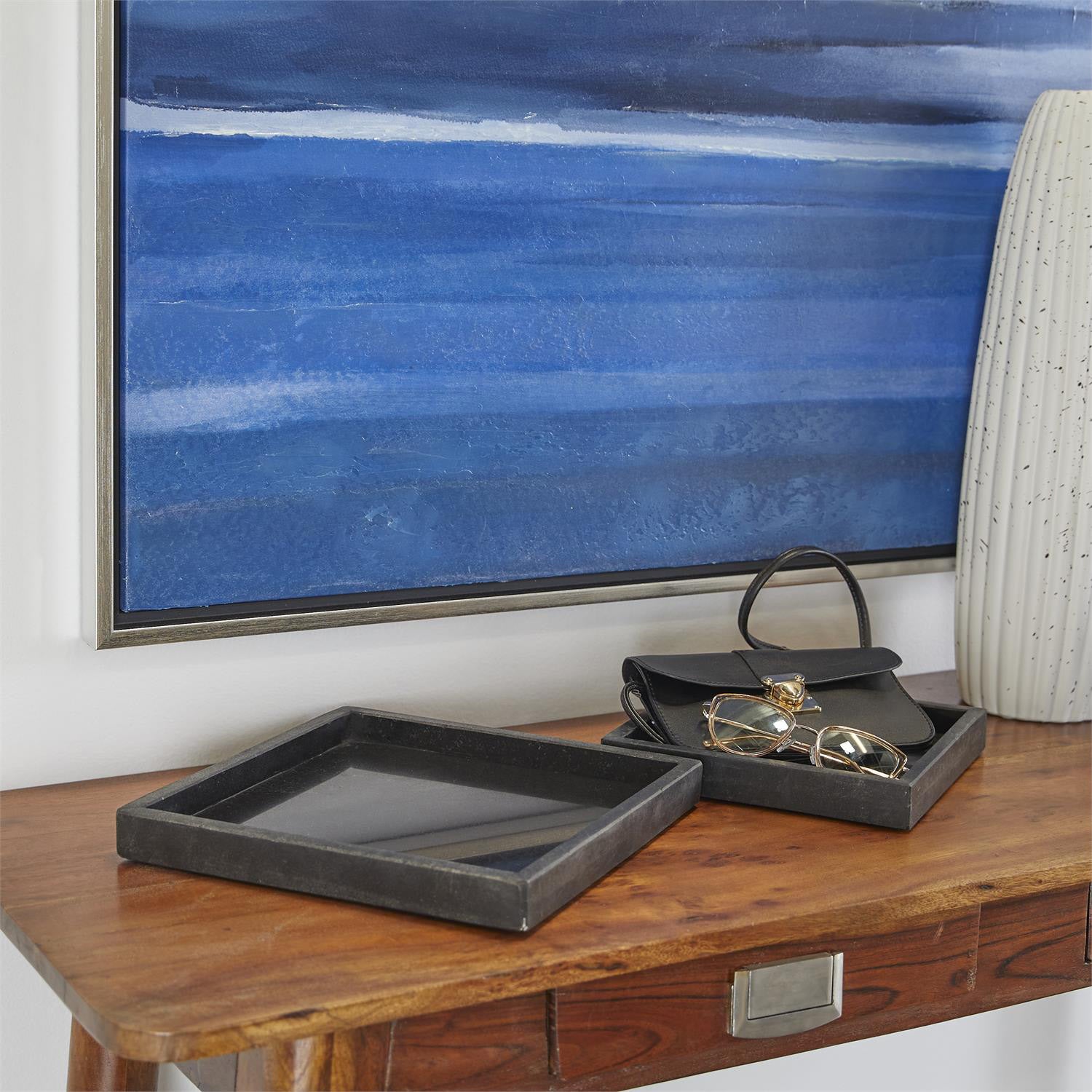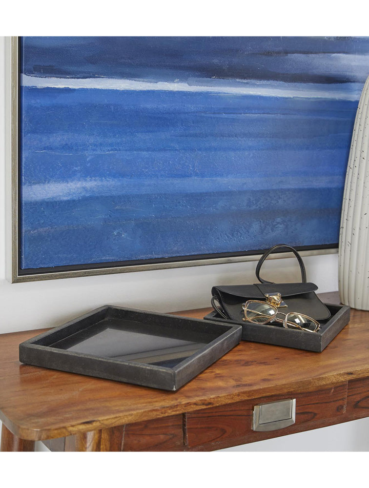 Centro de mesa cuadrado grande de marmol negro con bordes elevados. mide 25.40 cms por lado x 3.30 cms de alto.