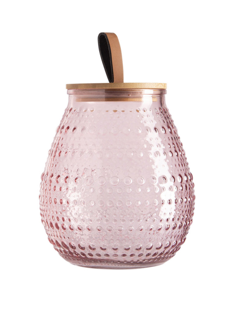 Canister o pomo, ideal para dulces o galletas. con cierre hermetico y tapa de madera. mide 33 cms de diametro x 18 cms de alto.
