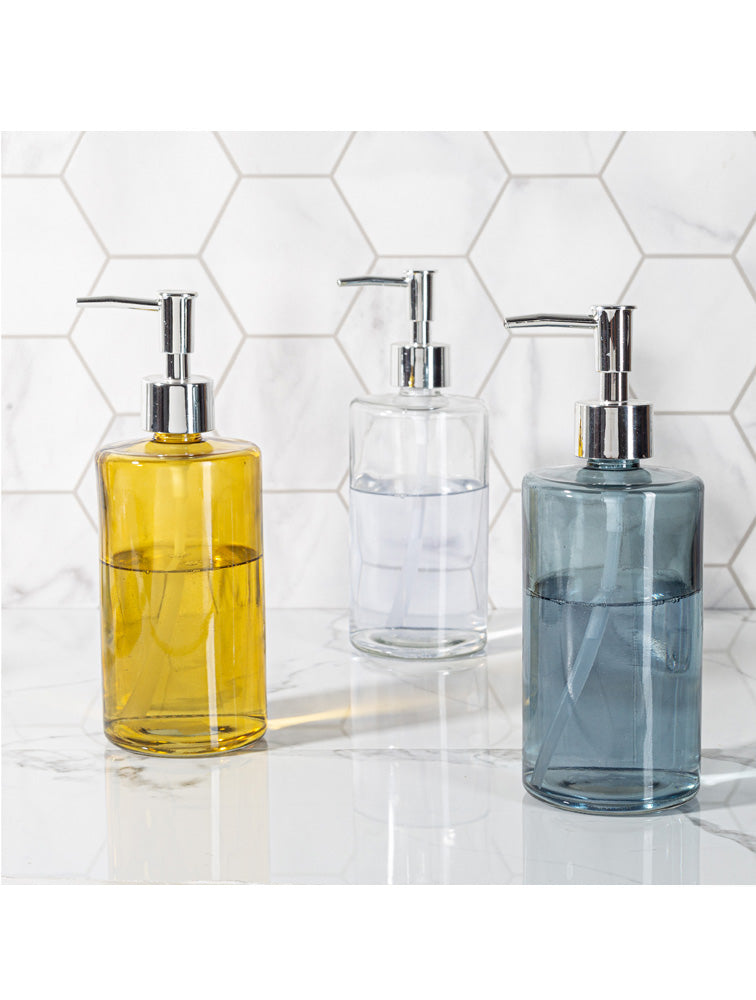 Pomo de vidrio de color para jabon. mide 7.60 cms de diametro x 15.24 cms de alto.