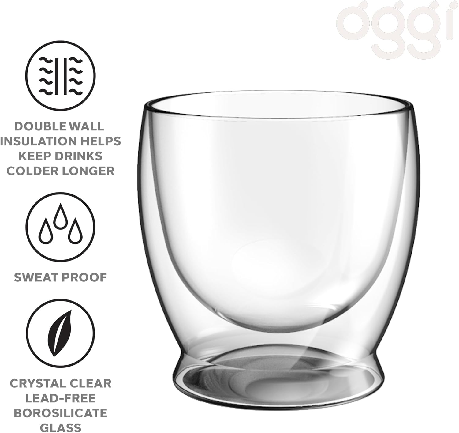 Set de 2 vasos aislante de doble pared de cristal marca oggi para whisky, ideal para whisky, brandy, tequila, mezcal y bourbon a la antigua. se mantiene fresco durante más tiempo, incluso al aire libre. capacidad: 300 ml (10 oz), juego de 2.