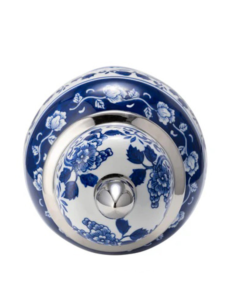 Jarron en ceramica estilo chinoiserie en azul y blanco. cada pieza está pintada y decorada a mano. puede haber variaciones e imperfecciones que le aportan más carácter. medidas: 35.6 x 17.8 cms. peso aprox 2.7 kilos