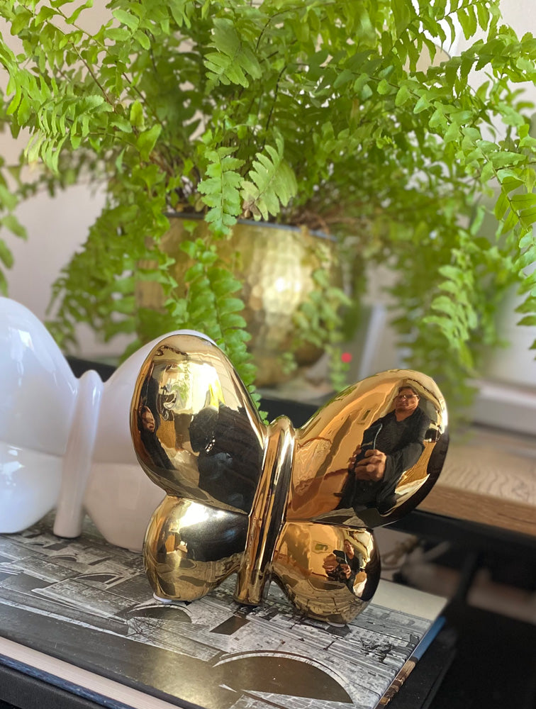 Mariposa en ceramica de color dorado con acabado brillante. ideal para la decoración de la sala de estar o el cuarto de las chicas. medida: 15.3 cms