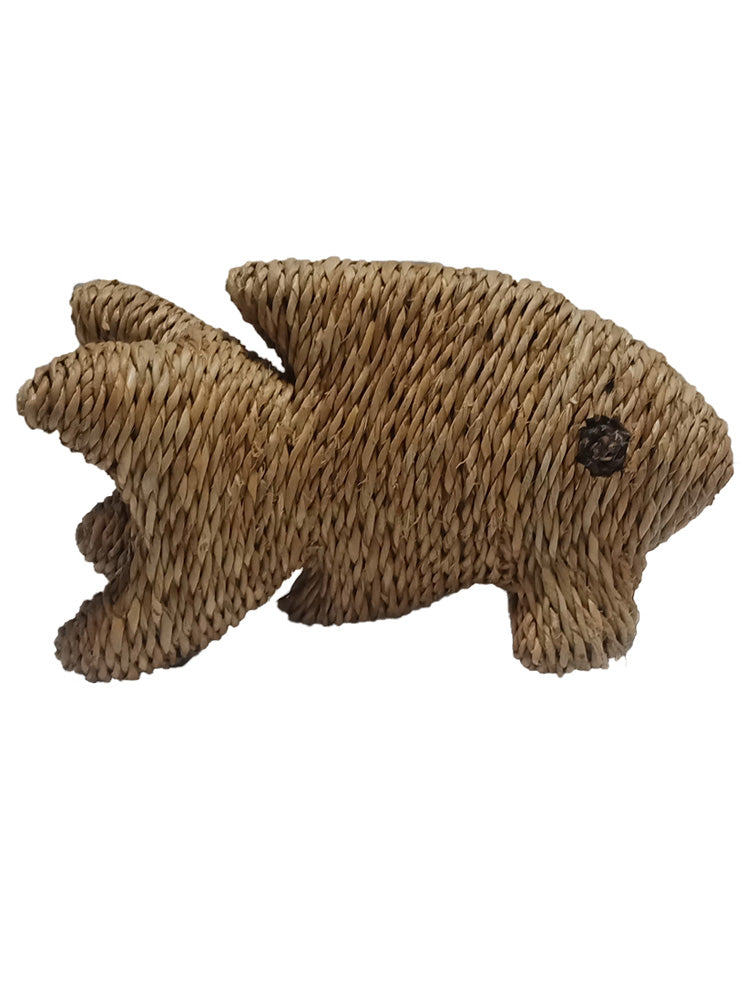 Escultura en rattan en forma de pez. diseño rustico. mide 23 cms de alto.