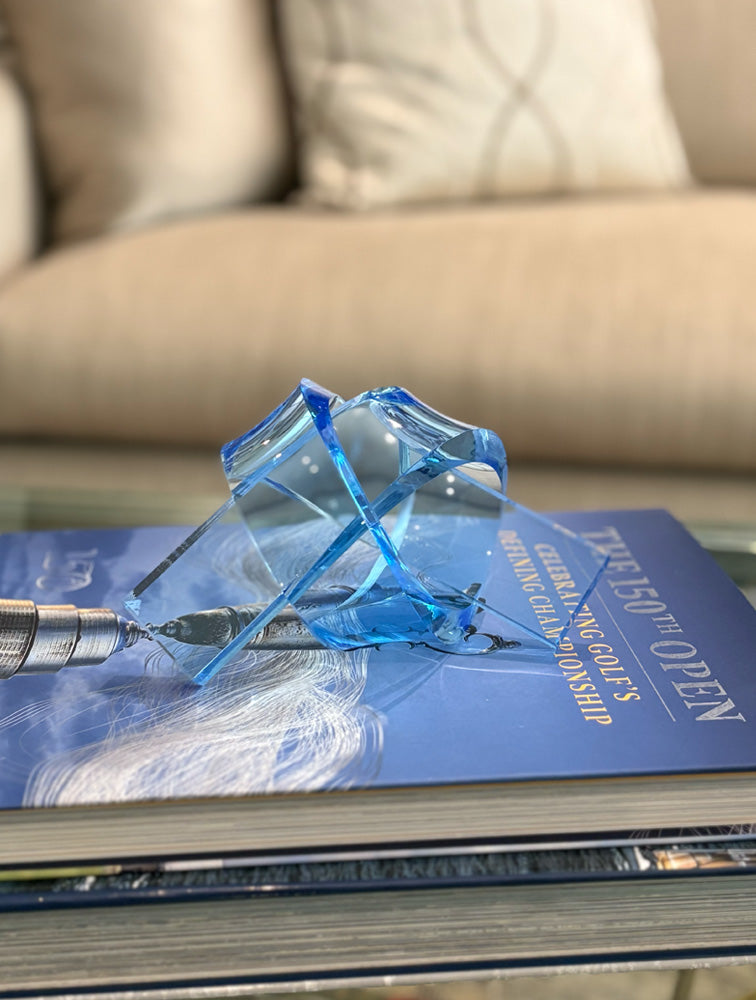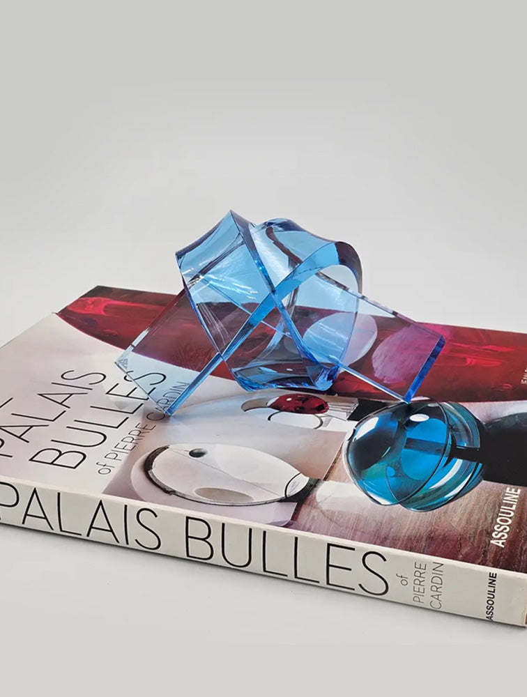 Nudo decorativo en acrilico de 17 x 10 x 10 cms en color celeste transparente.