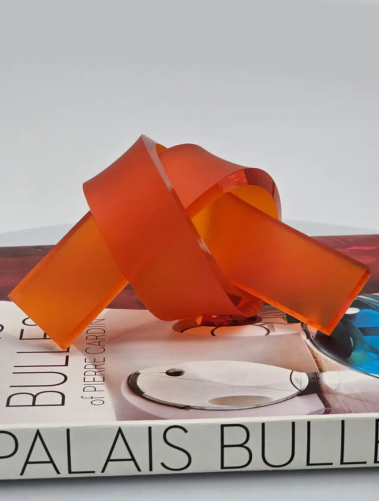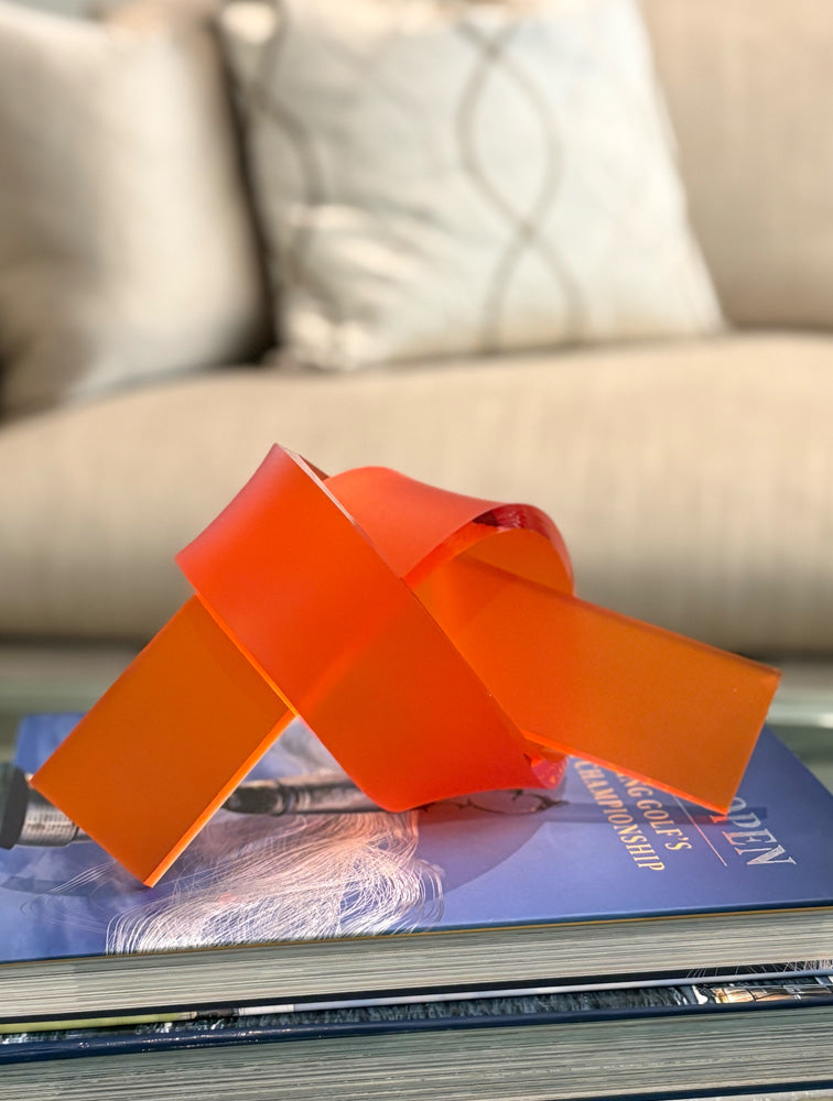 Nudo decorativo grande en acrilico de 26 x 18 x 18 cms en color naranja transparente.
