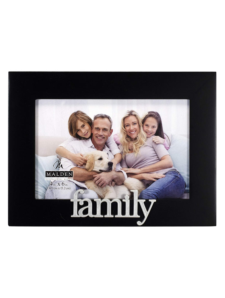 Marco de fotos negro con mensaje "family"(familia). medida: 10.16 x 15.24 cms